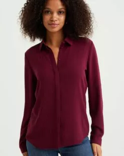 WE FASHION Chemisiers Chemisier Femme Bourgogne / Lie De Vin