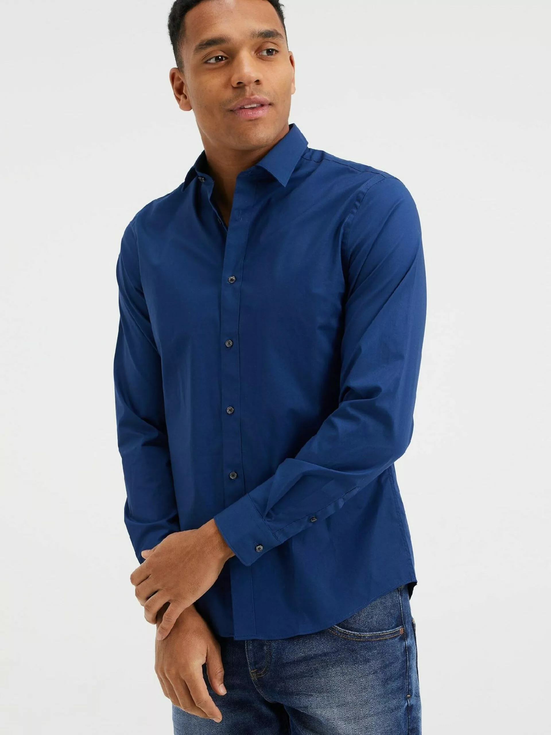 WE FASHION Chemises Décontractées Coupe Slim Chemise Homme Bleu Outremer