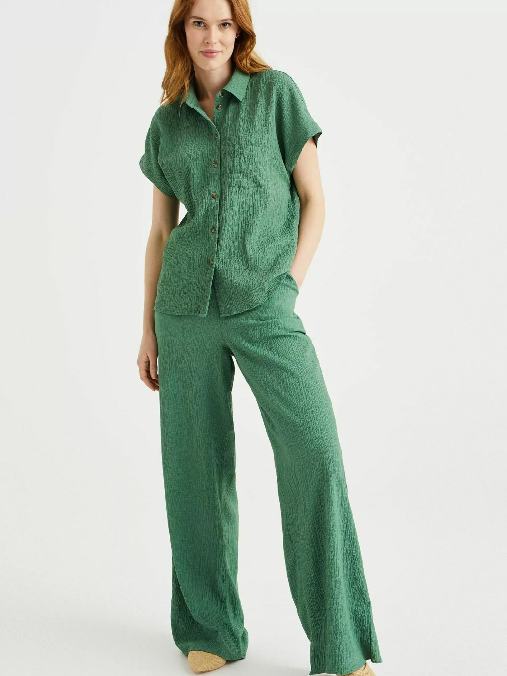 WE FASHION Pantalons En Toile Loosefit Pantalon Femme Vert